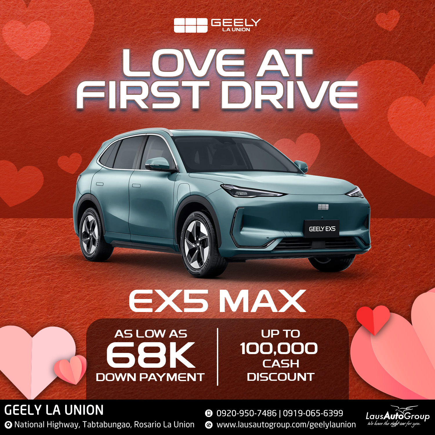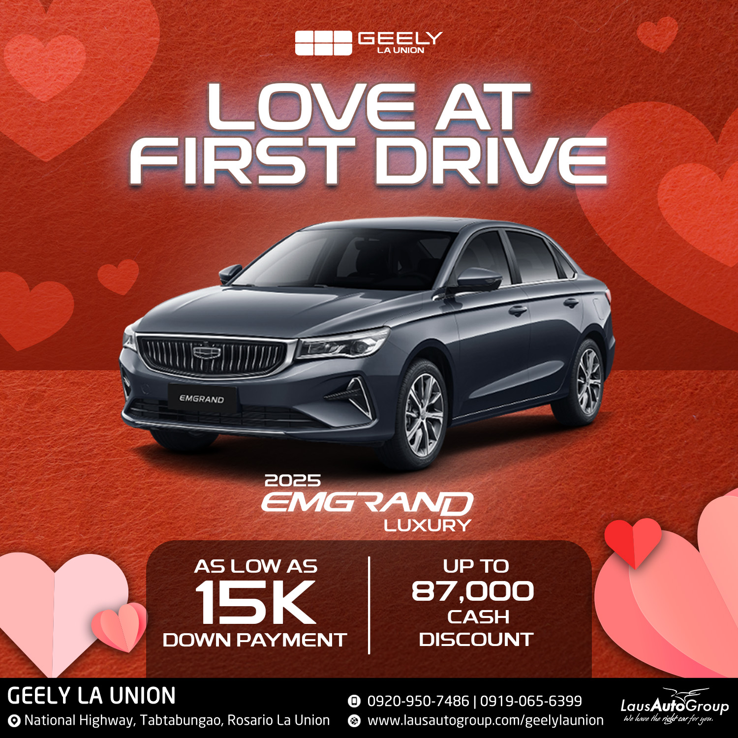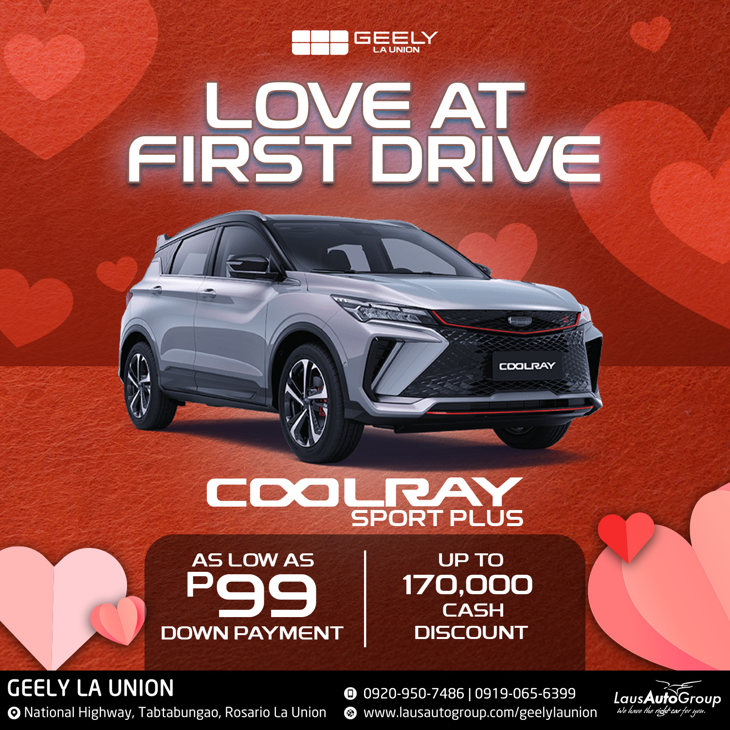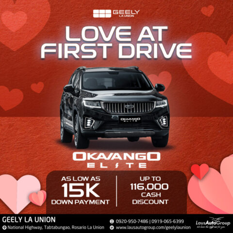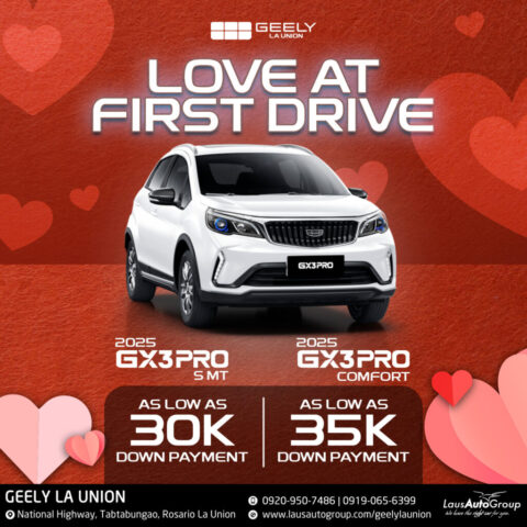 Feel the love at every twists and turns with 𝐆𝐞𝐞𝐥𝐲 𝐋𝐚 𝐔𝐧𝐢𝐨𝐧. Choose the perfect car for your day-to-day needs with LOW down payment deals and irresistible cash discounts. You’ll definitely love every drive, the road, the scenery, and the thought of owning the road with Geely.