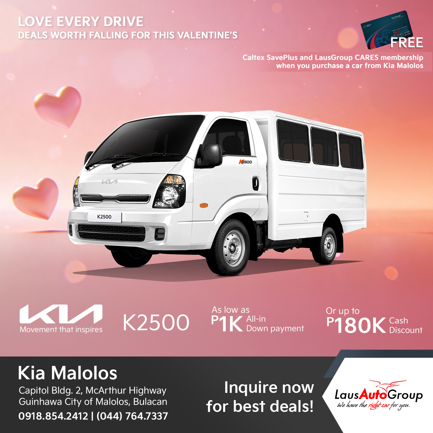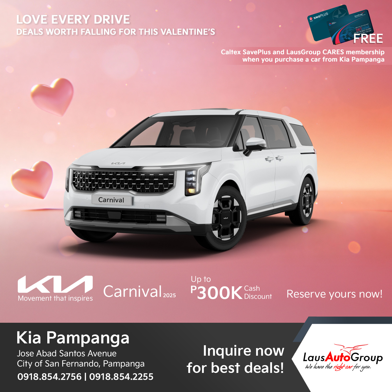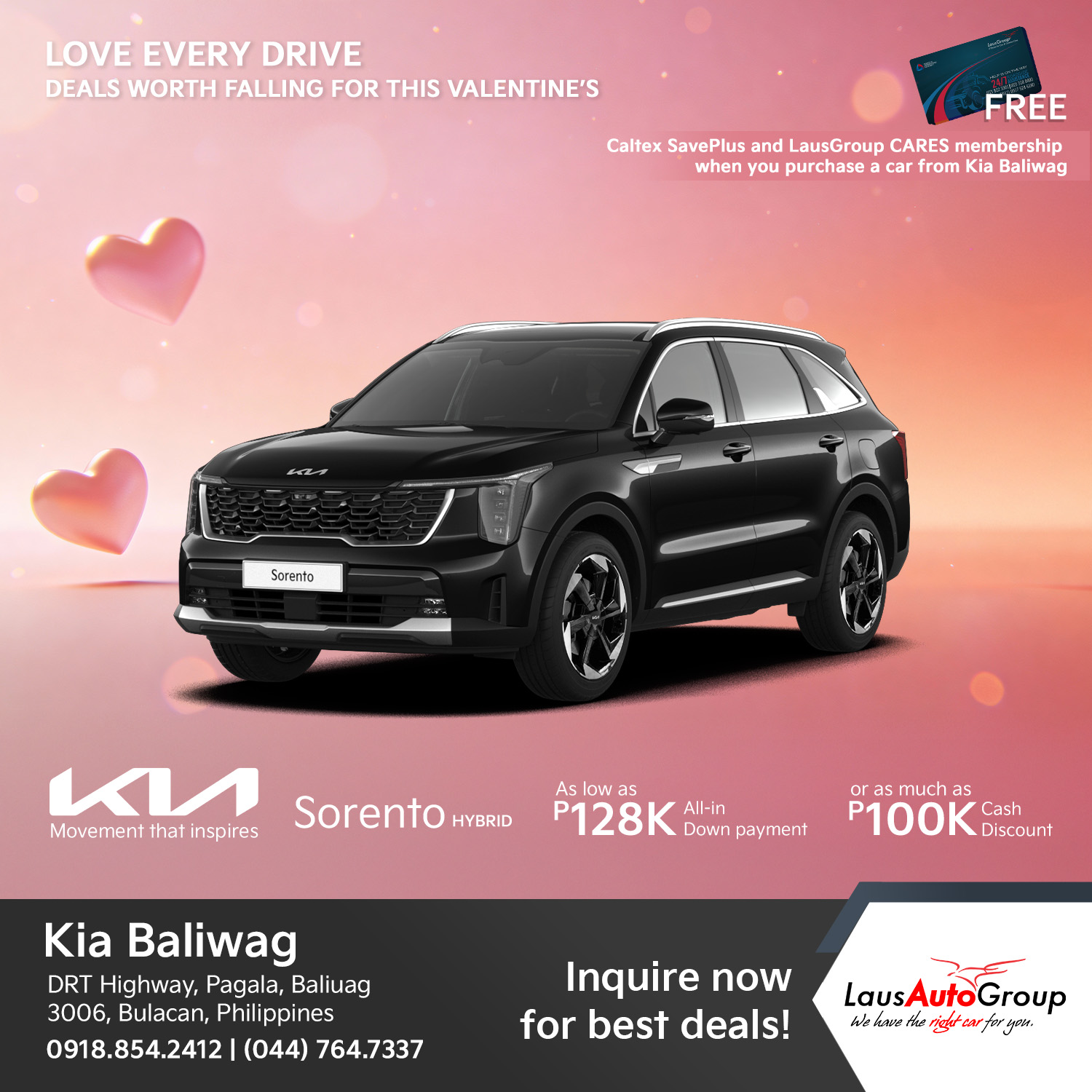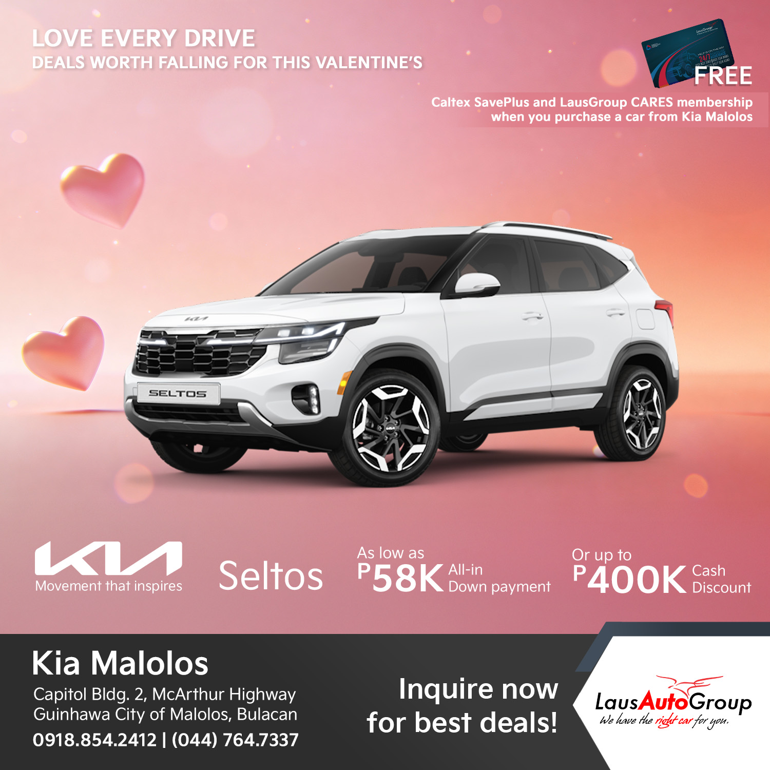 FEBulous deals this love month! Fall into #Kia’s head-turning looks and fall harder with our excitingly-lovely deals! Fall head over heels for a ride that actually loves you back this Valentineโs Day, because whether youโre a trendsetting soul looking for that perfect aesthetic to anchor your feed, a high-energy group of friends craving a tech-packed cabin for your next road trip, or a family in need of a spacious sanctuary for those chaotic but beautiful school runs, we have the ultimate match waiting on our lot.