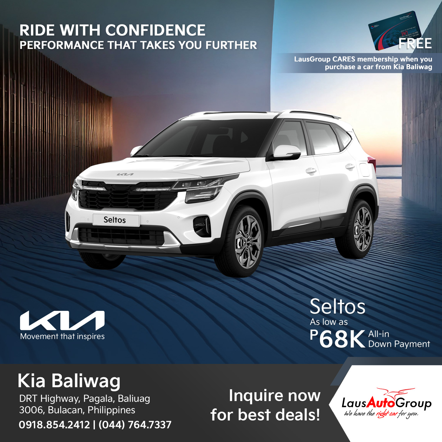 Enjoy low down payment deals and big discounts plus free LausGroup C.A.R.E.S membership for one year at LausGroup Kia dealers!