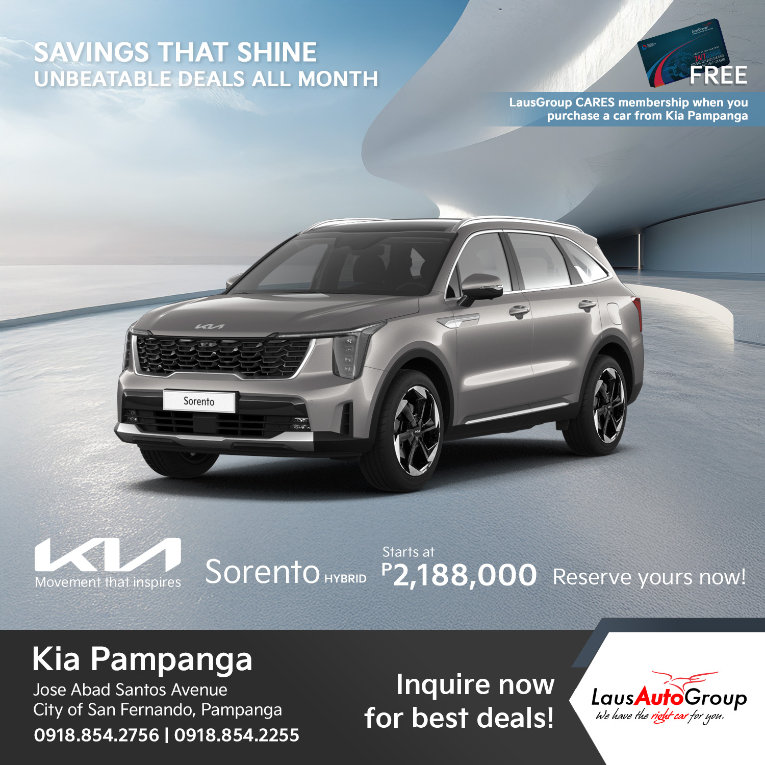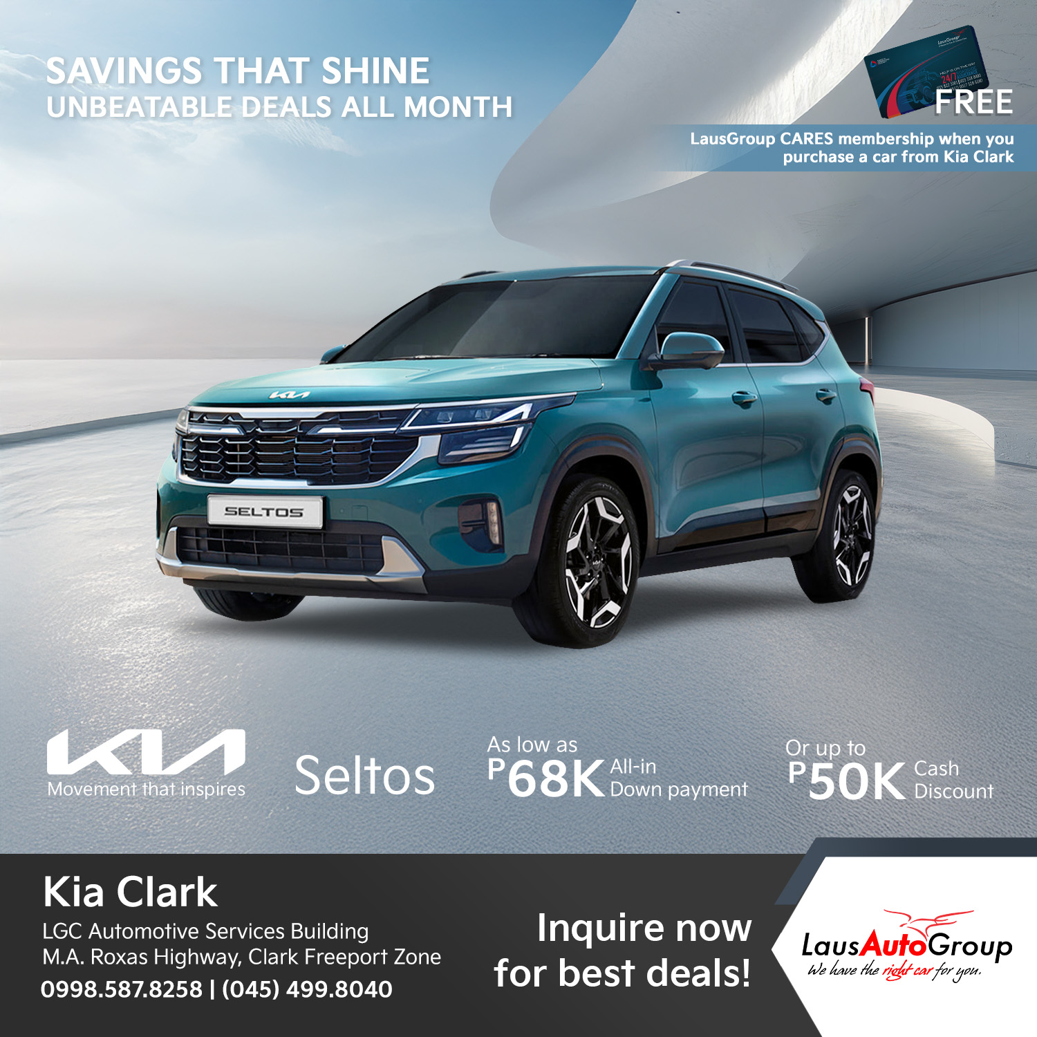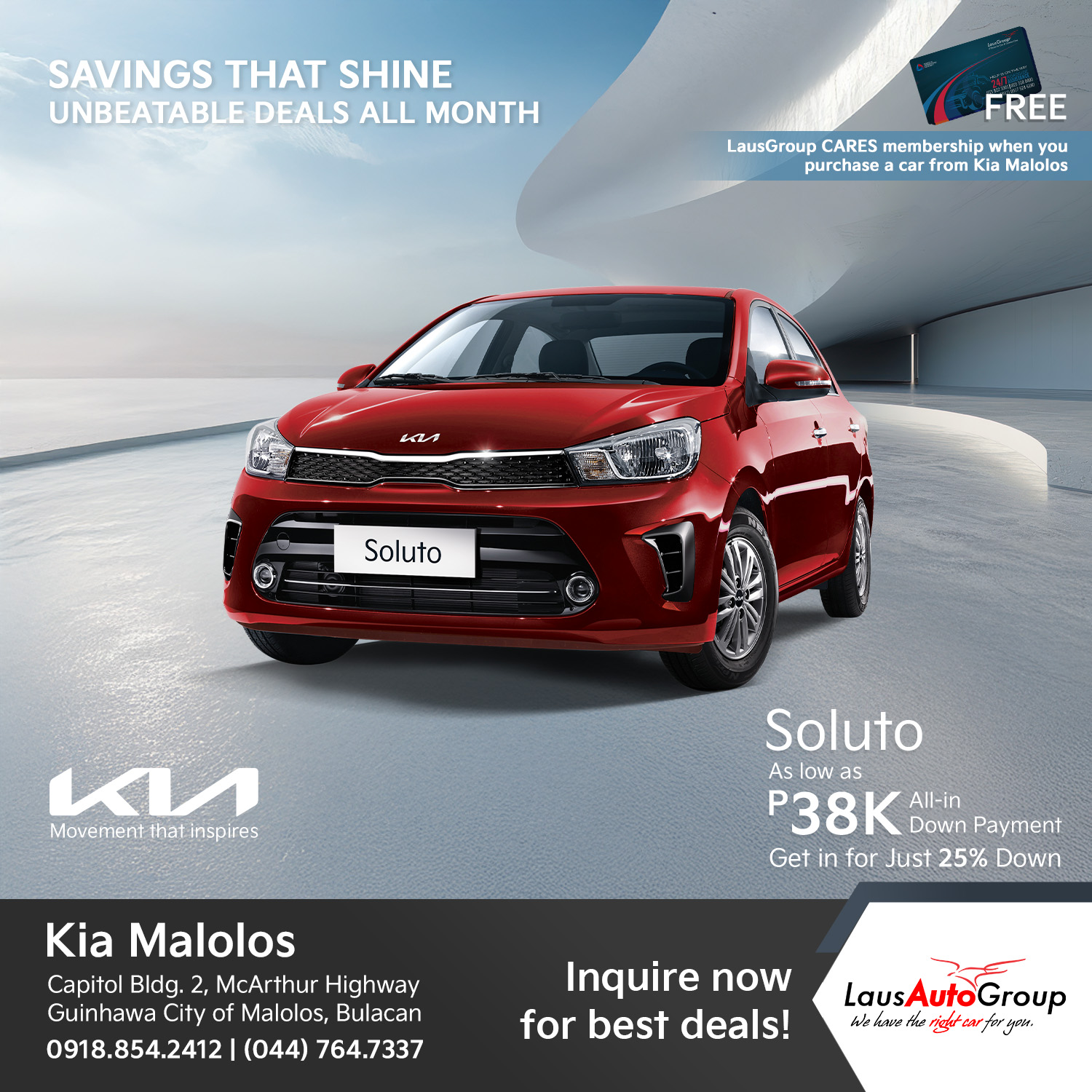 Enjoy low down payment deals, big discounts, plus free LausGroup C.A.R.E.S membership for one year today, contact us!