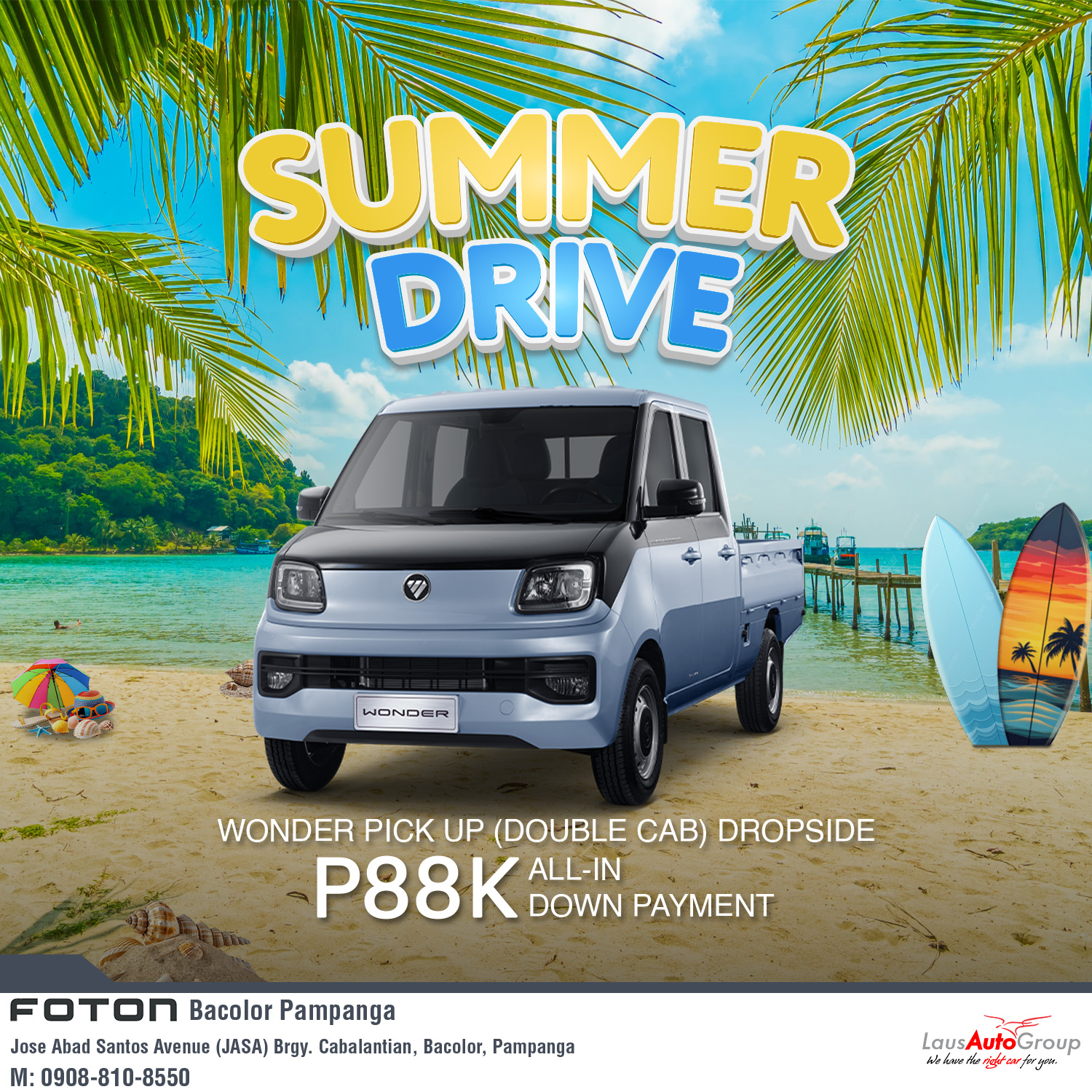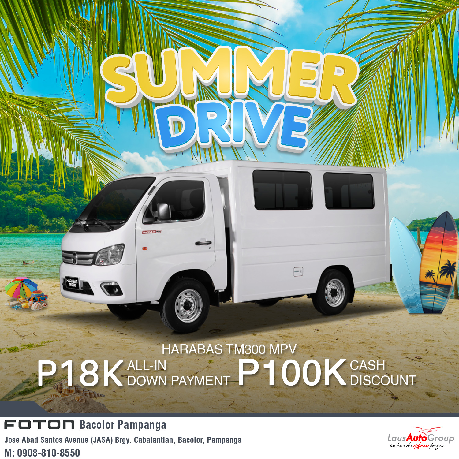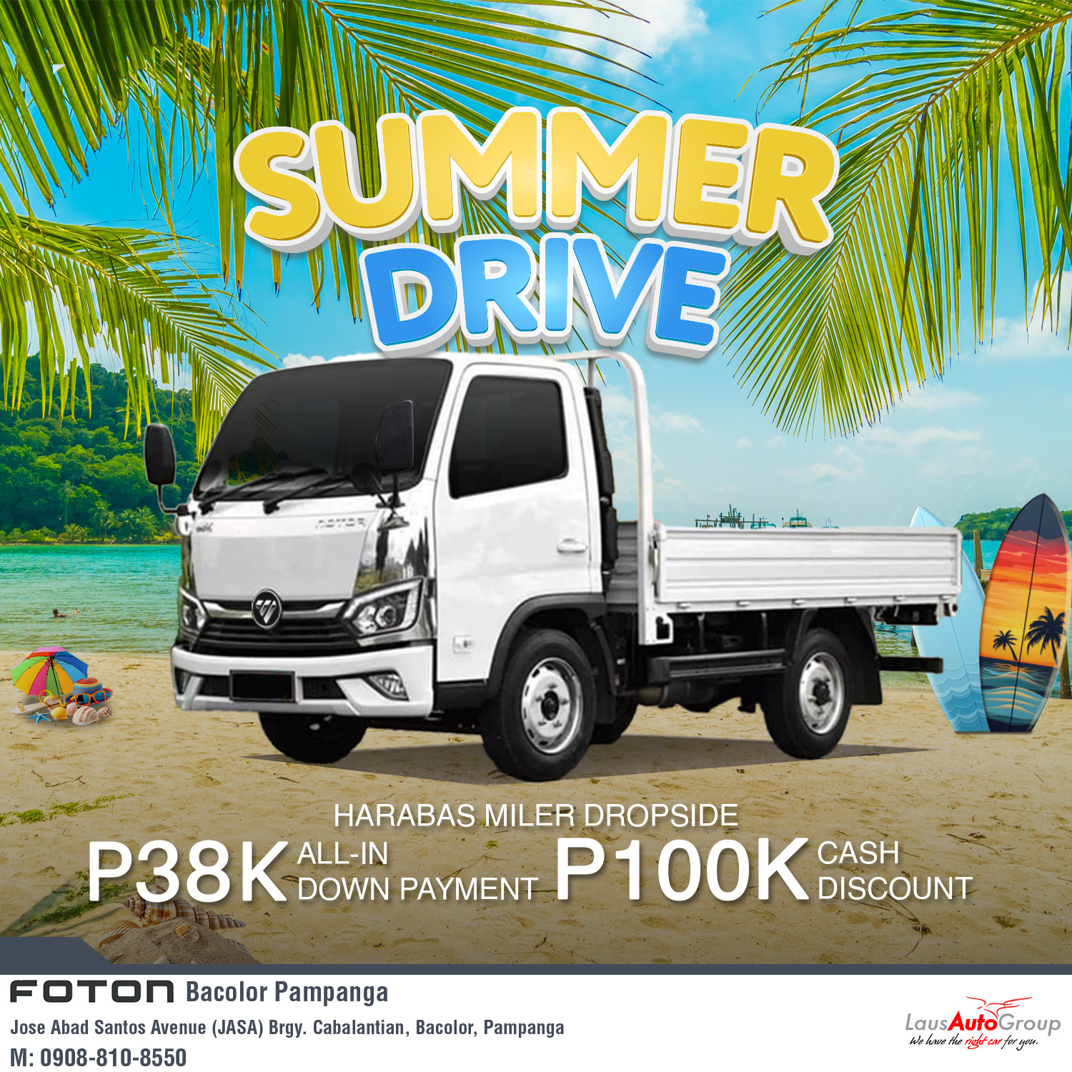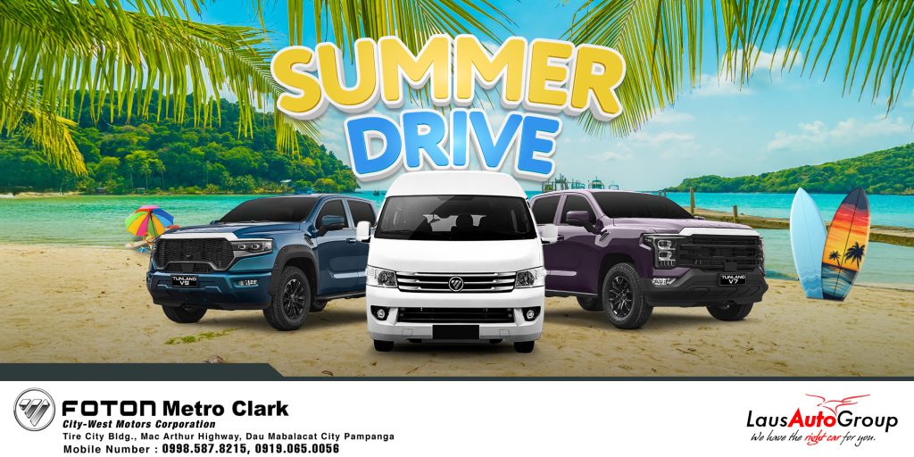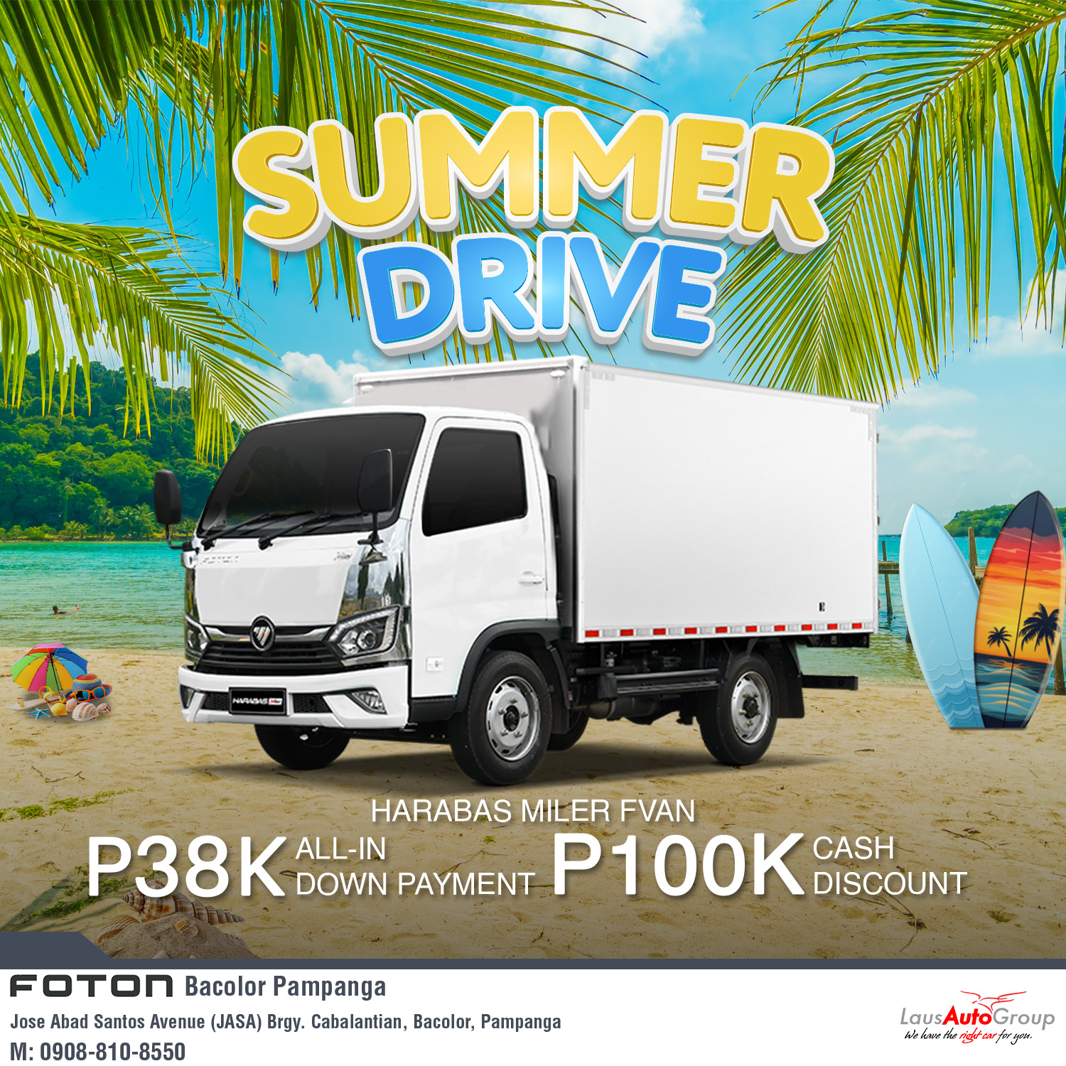 Make every summer trip better with Foton! Built for work, ready for play, and designed to keep you moving all season long. Now with low down payment deals, flexible financing options, and easy application process! Whether for negosyo or pamilya, Foton gives you the strength and reliability you need, perfect for both everyday use and heavy-duty demands this season. Sulit, matibay, at ready sa kahit anong biyahe.